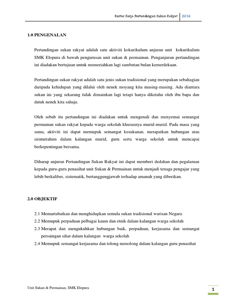 Kesukanan dan pertandingan yang sihat dalam kalangan murid. Kertas kerja program pemantapan disiplin kertas cadangan seminar motivasi pmrspm kertas cadangan. KERTAS KERJA karnival sukan permainan 1 dan guru.